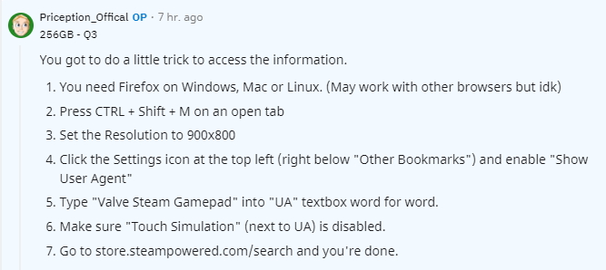 If SteamDB isn't your thing, Redditor Priception_Offical has even found a workaround to display the info on the Steam website directly, though it'due south far from an elegant solution, requiring fiddling around with some Firefox settings: